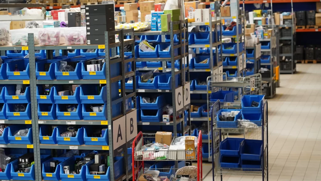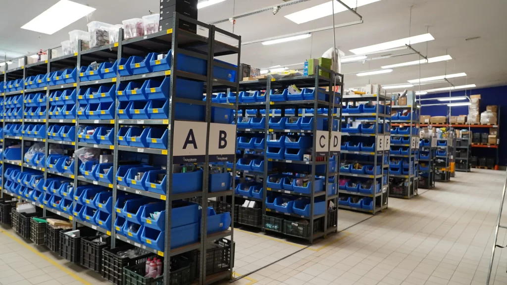 • pontos nyilvántartás szerint kerülnek polcra (mint a képen is látható – strukturált, bin-lokációs rendszerrel),